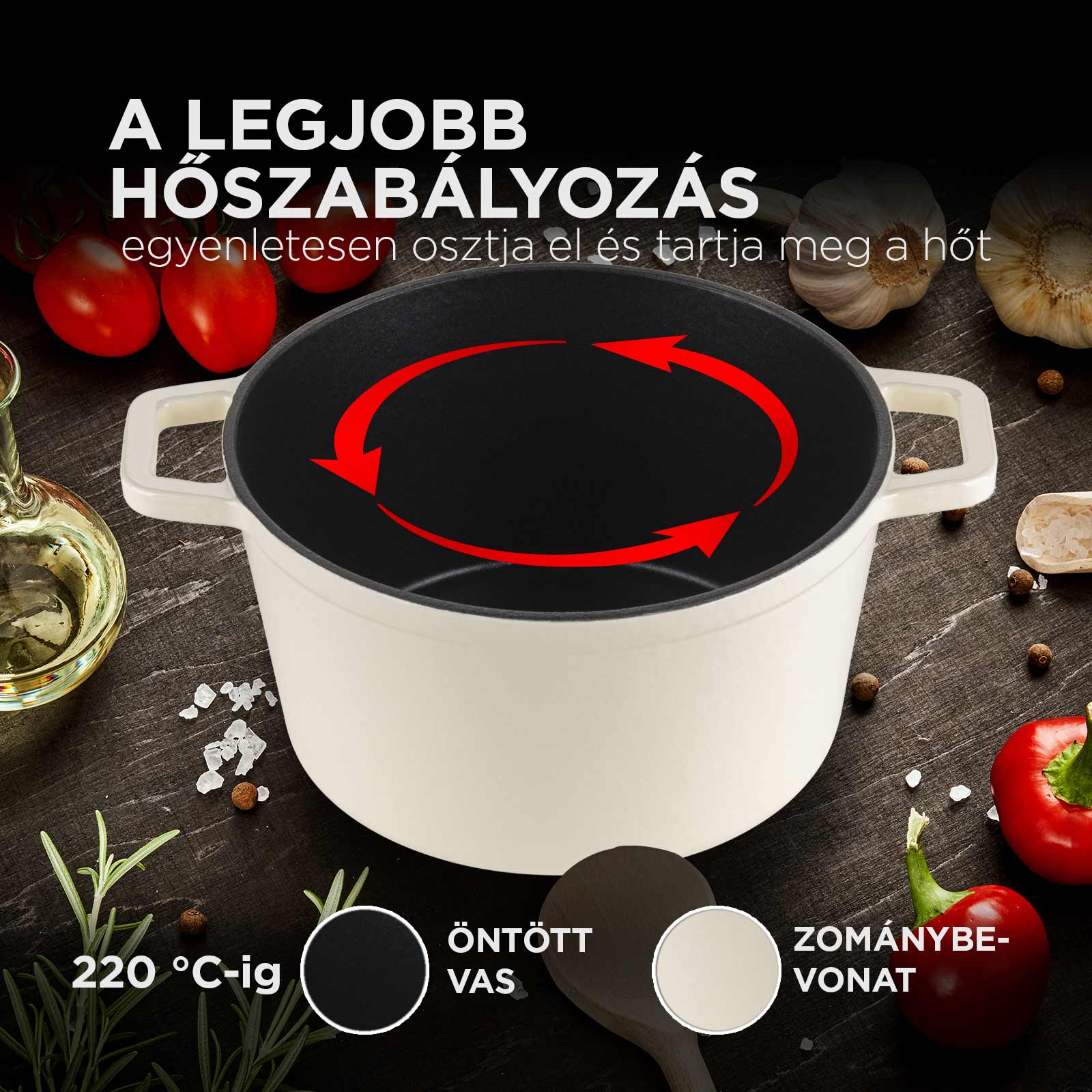 - Az öntöttvas lassan hűl le, így a serpenyőben lévő étel a főzés befejezése után akár egy órán keresztül is meleg marad.