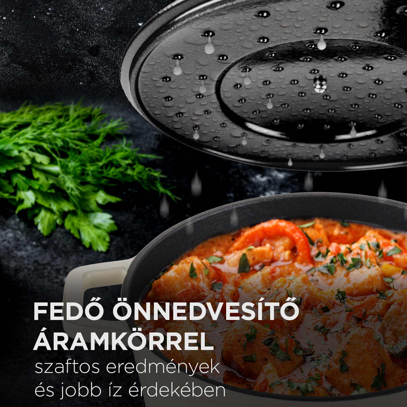 - A speciálisan formázott fedél lecsapja a gőzt, így az íz és a tápanyagok az ételben maradnak.