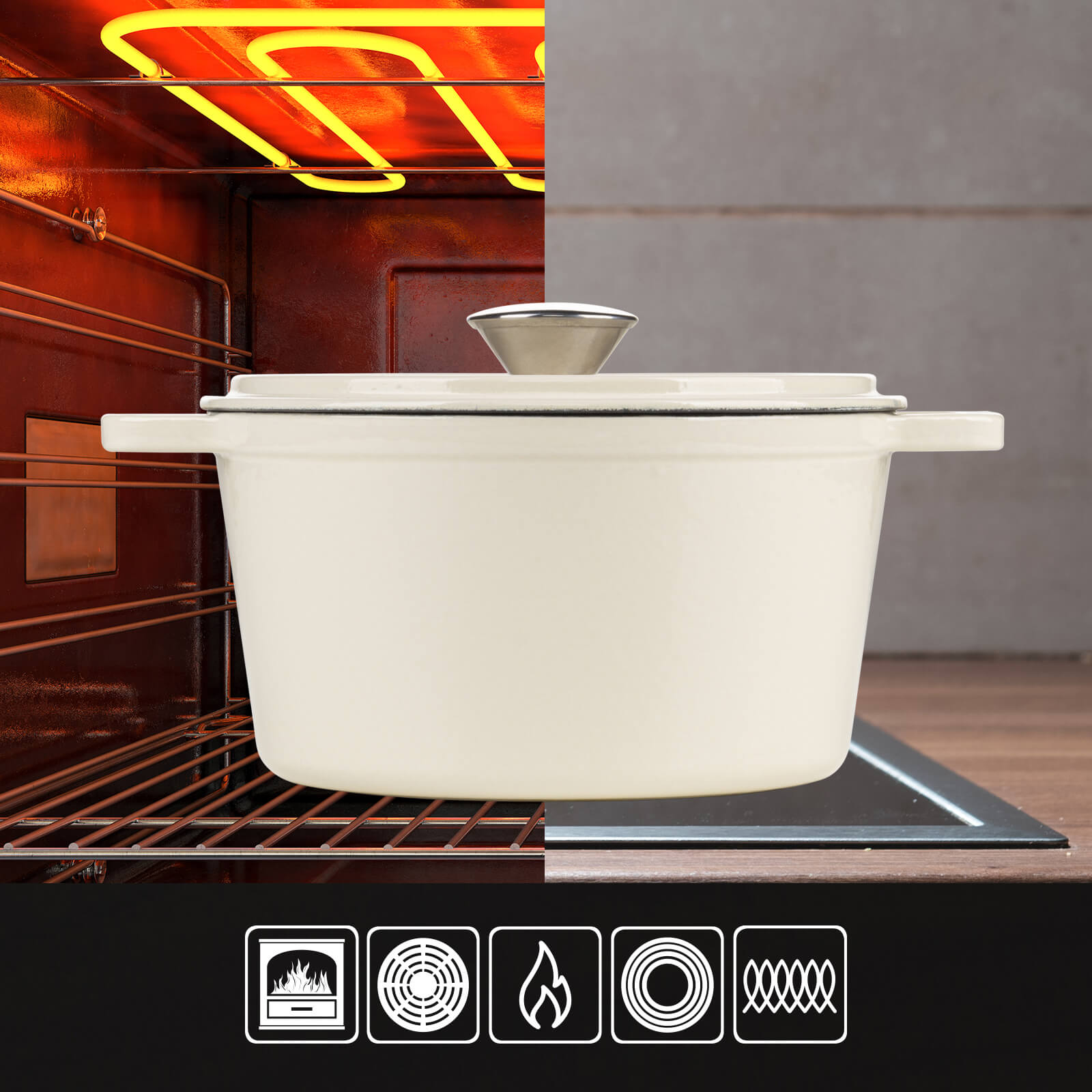 - Minden főzőlapon használható: gáz, elektromos, kerámia, indukciós, sütő és grill.