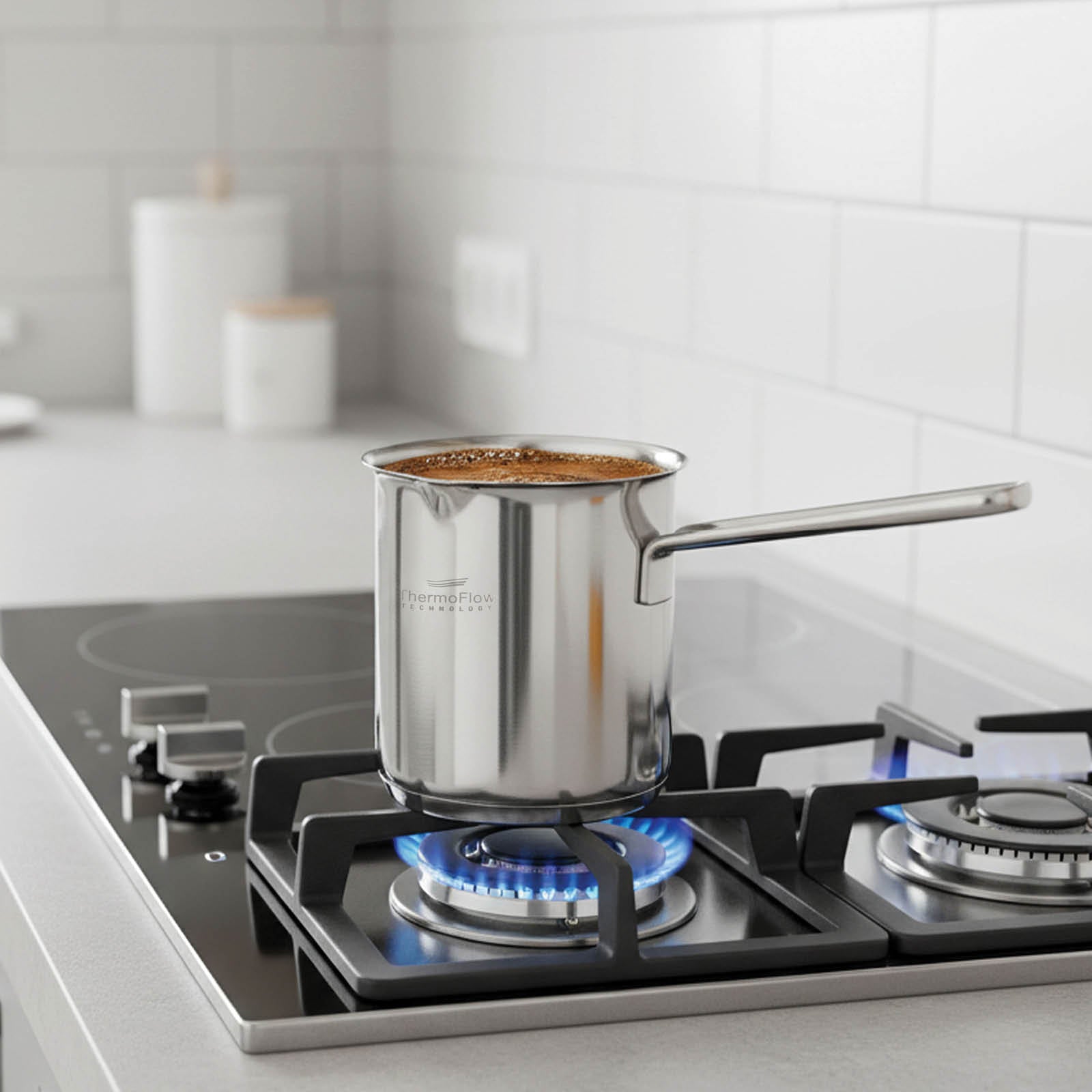 - Az üreges kialakítású acél fogantyú megakadályozza a túlmelegedést, így nem fog megégni a kanna cipelése közben.