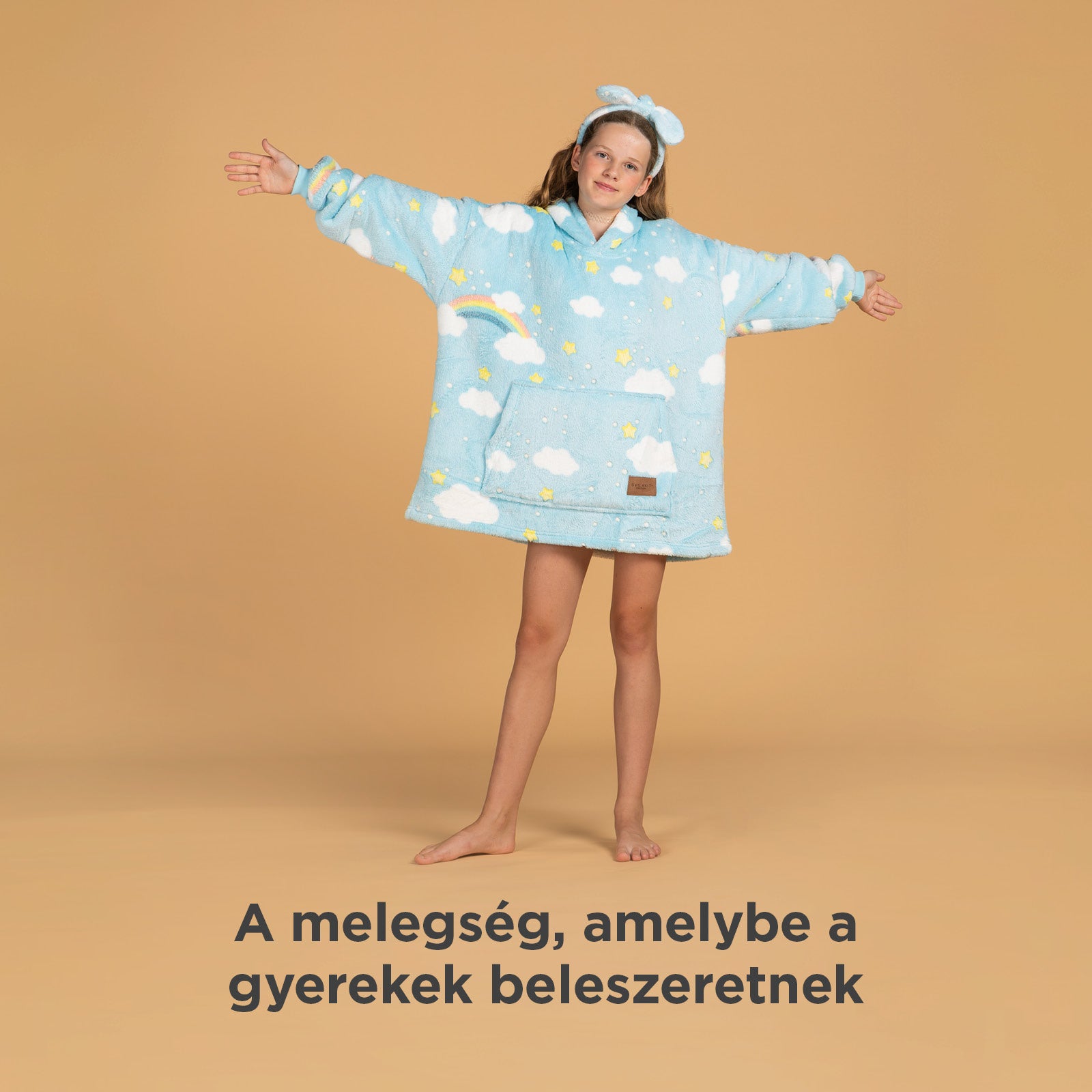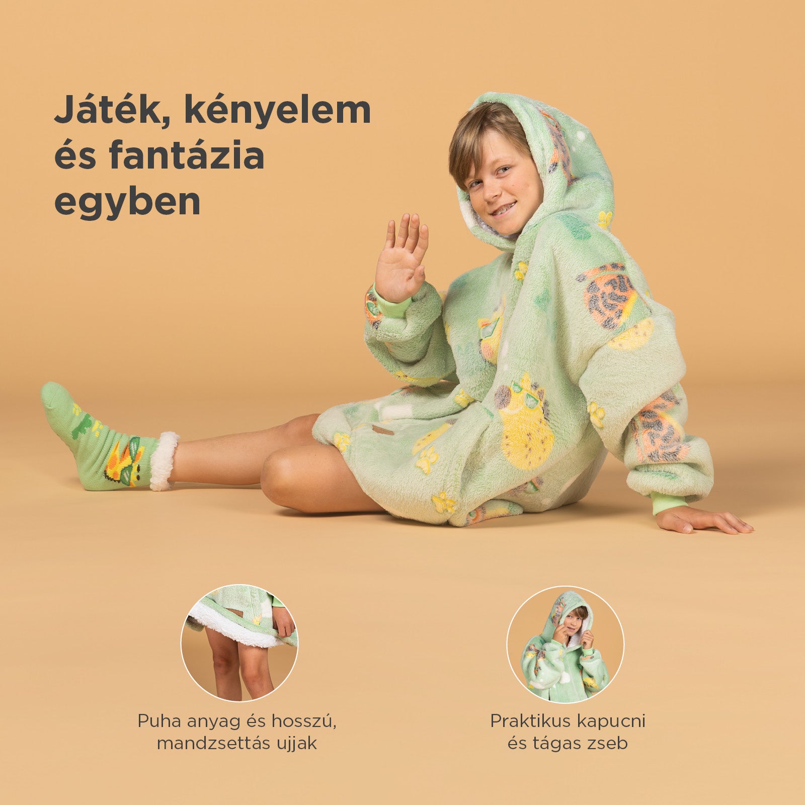 - A gyerekek úgy érzik magukat, mintha egy varázsköpenyt vennének fel, amikor belebújnak a bolyhos kapucnis takaróba.