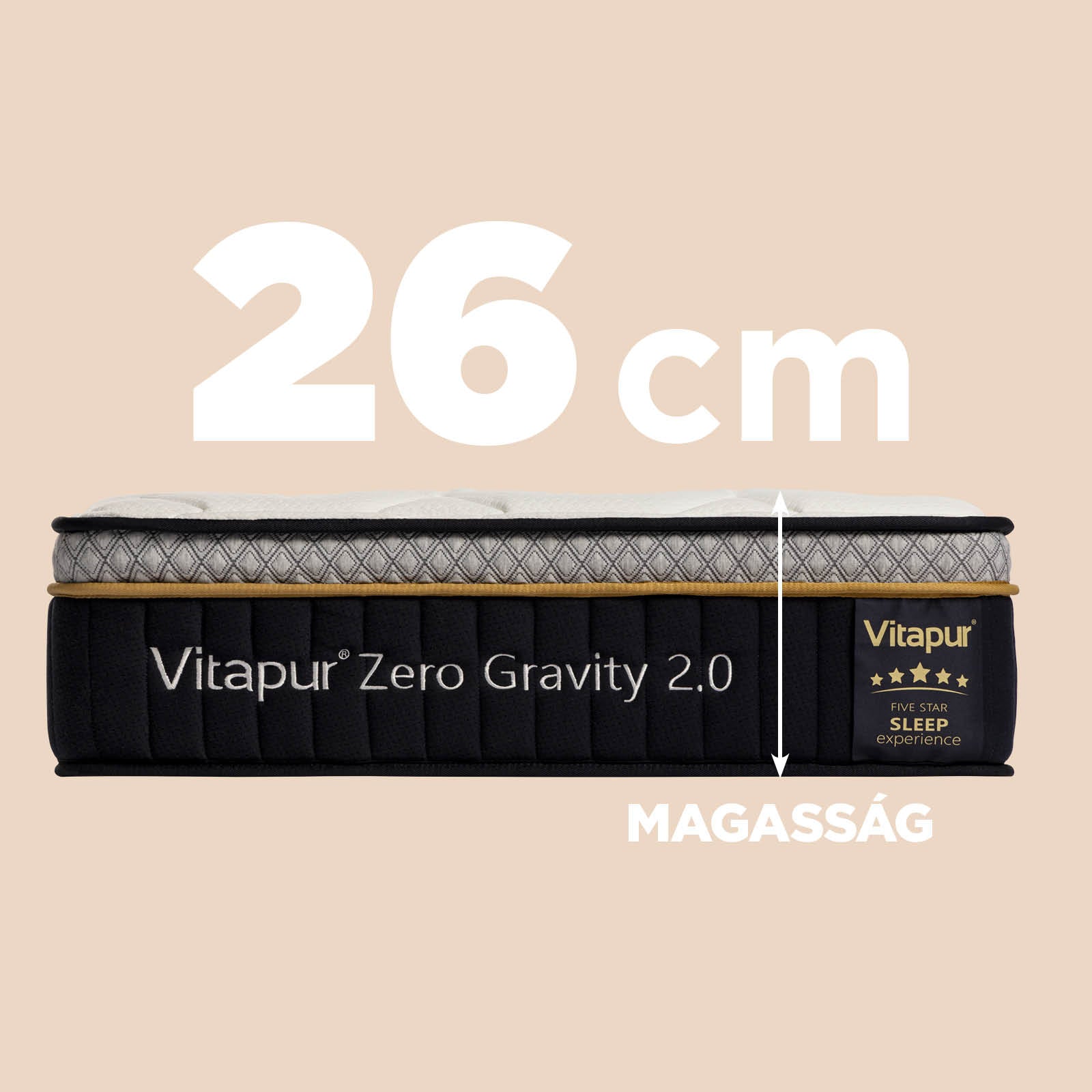 Fedezze fel a továbbfejlesztett Vitapur ZeroGravity 2.0 matracot, amelyet úgy terveztek, hogy a felhőn alvás érzését nyújtsa. Fejlett, táskarugós szerkezetének köszönhetően súlytalan érzést biztosít, hiszen nem érez rezgéseket vagy mozgást a matracon. A 7 komfortzónás mag személyre szabott alátámasztást nyújt minden alvási pozícióban – akár oldalt, háton vagy hason alszik. További kényelmet ad a Spine-Align réteg, amely segít megőrizni a gerinc helyes tartását és megelőzni a fájdalmat. Az innovatív BreathFlex réteg hatékonyan vezeti el a hőt és a nedvességet, így biztosítva az ideális alvási környezetet. A felhőszerű érzést tovább fokozza a huzatba varrt három rugalmas habréteg, amelyek elnyelik a test mozgását. Az elegáns színkombináció, a magas minőségű kidolgozás és a finom részletek esztétikus megjelenést kölcsönöznek a matracnak.