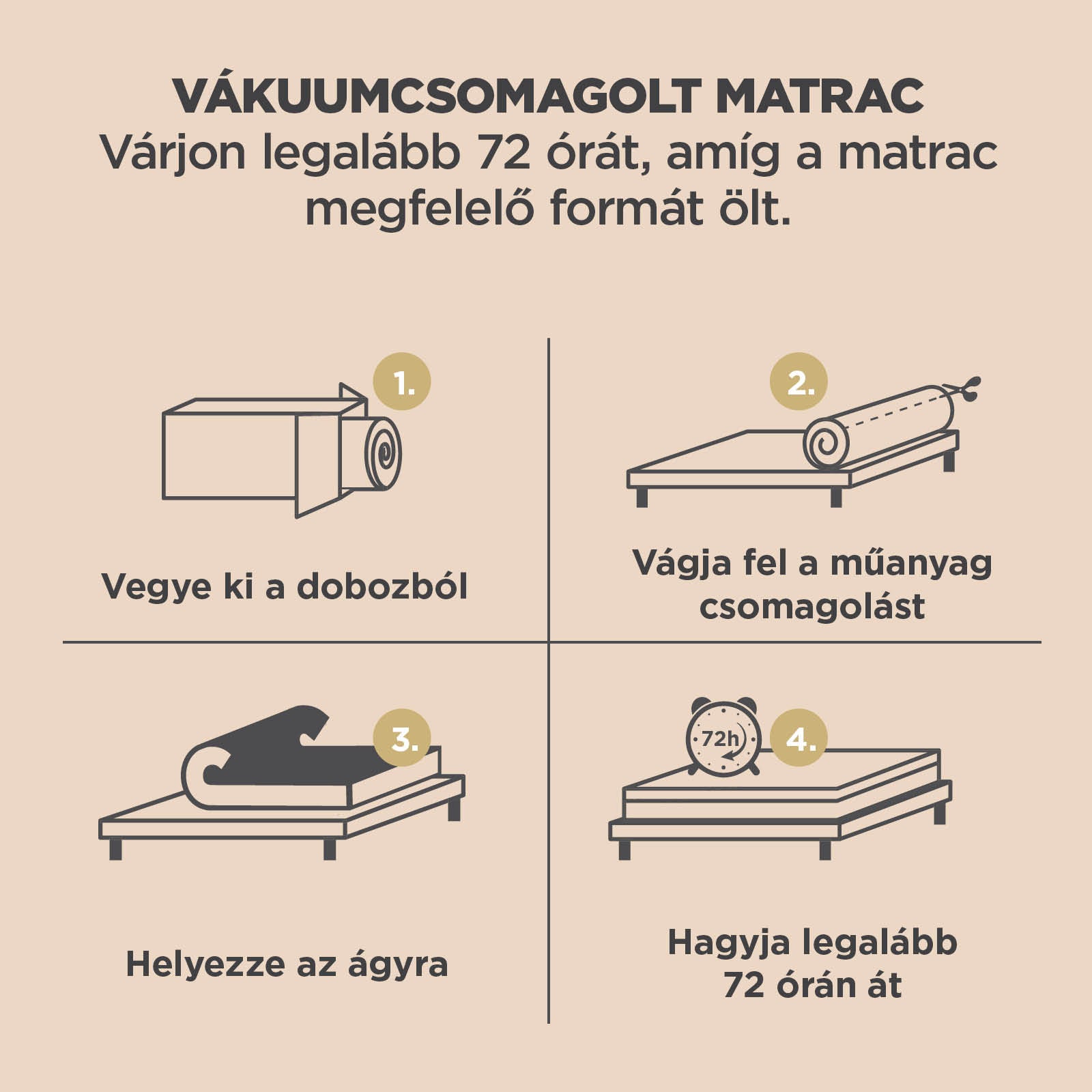 - A 3 habrétegű, memóriahabbal steppelt huzat alkalmazkodik a test formájához, és teljes ellazulást biztosít.