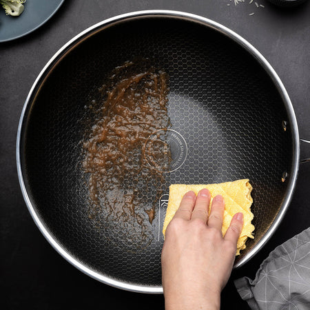 A Rosmarino HexaPRO lenyűgöz a prémium tapadásmentes bevonatával, amely hibátlan főzést biztosít, anélkül, hogy az ételek feleslegesen letapadnának. Ez azt jelenti, hogy az ételek nem tapadnak az edény aljához, megkönnyítve ezzel kedvenc ételeinek elkészítését. Emellett a tisztítás is könnyebb, mint valaha, mivel az ételek nem ragadnak a felülethez. Egy másik előnye, hogy a fogantyúk nem melegszenek fel főzés közben (*kivéve a sütőben, ahol a védőkesztyűk használata kötelező). A főzés még nyugodtabb és gondtalanabb lesz.