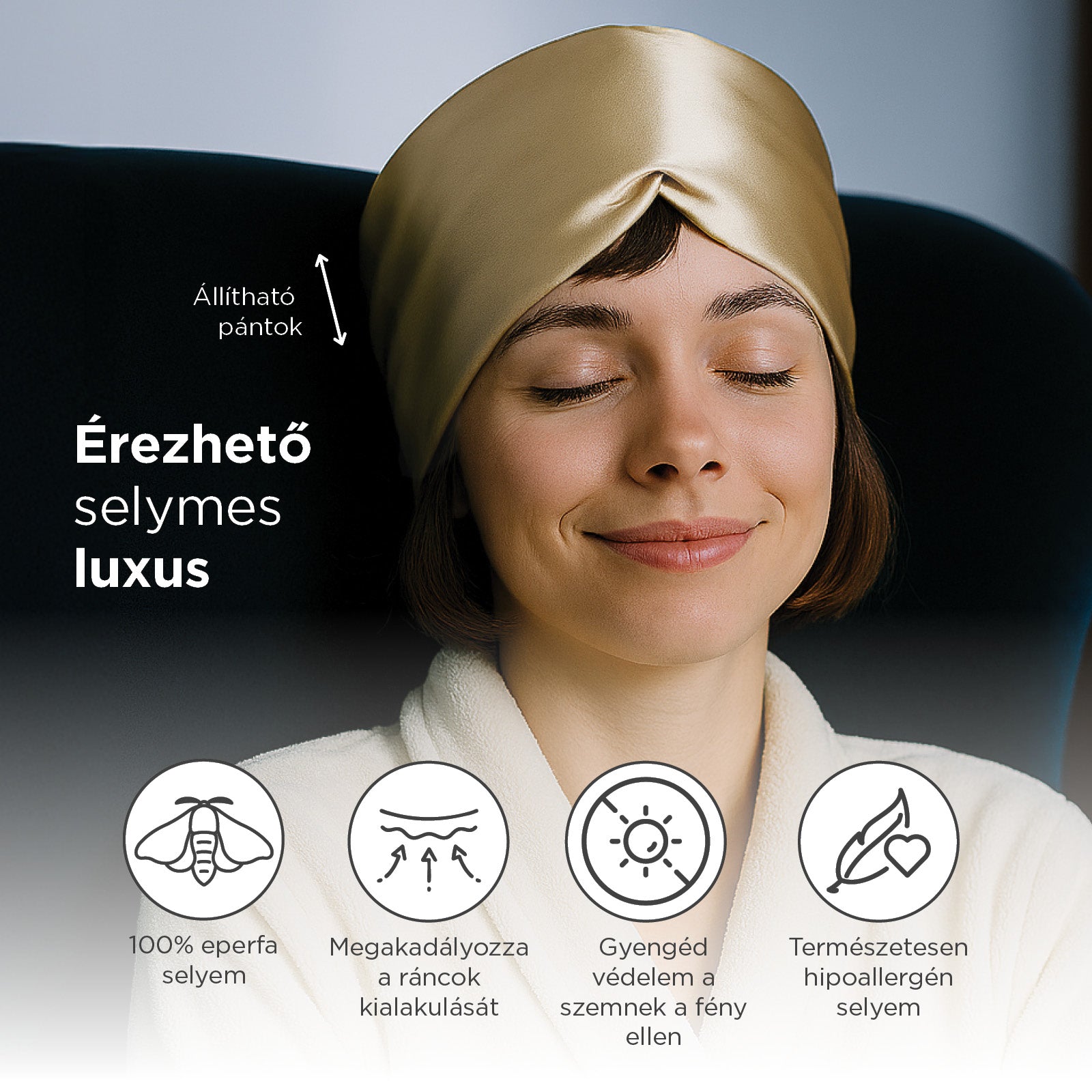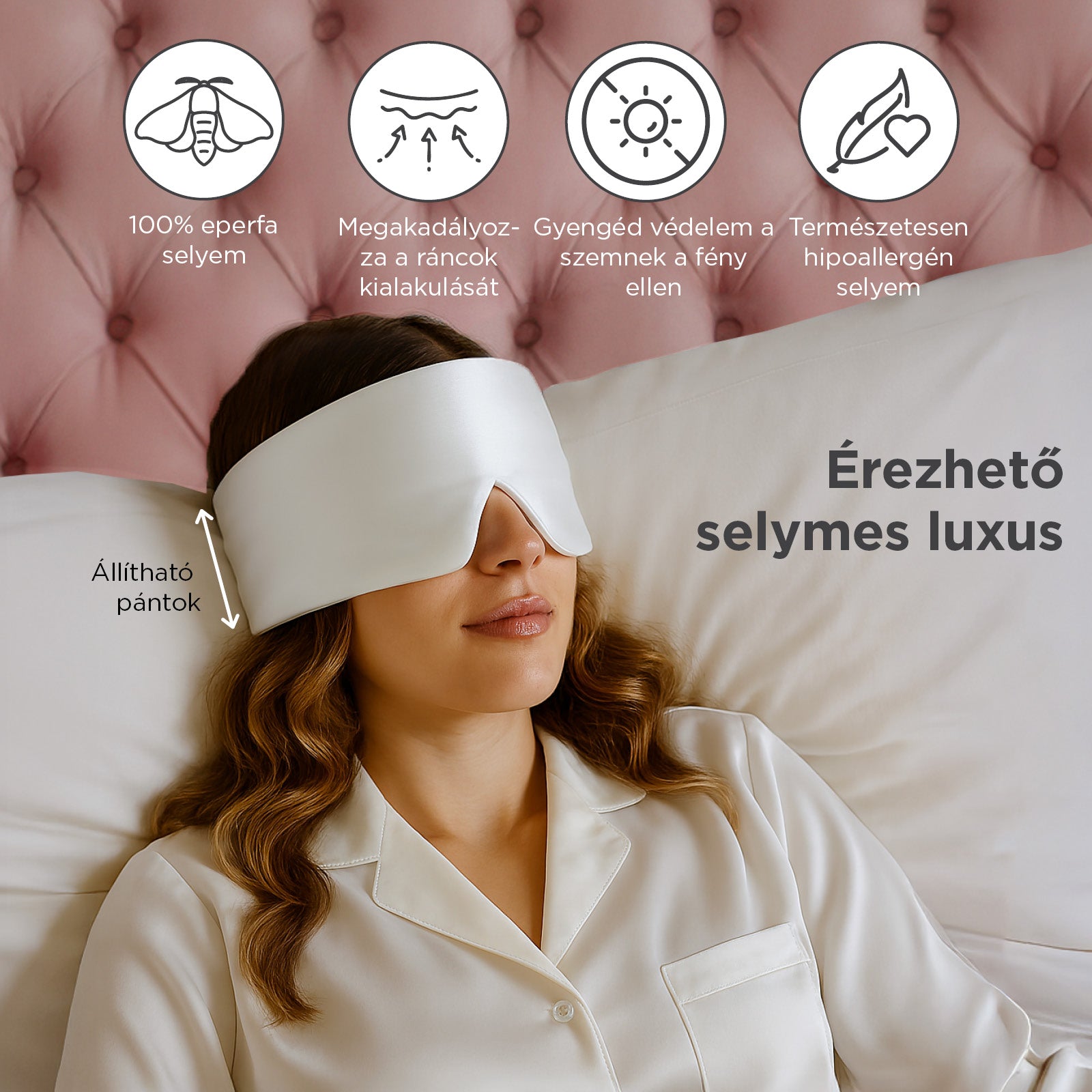 • 100% természetes hernyóselyem: prémium minőség, 22 momme a maximális kényelemért.