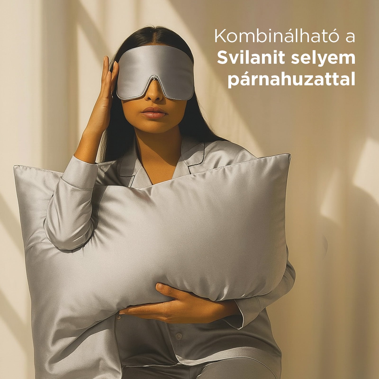 A Svilanit alvómaszk a legmagasabb minőségű, 22 momme sűrűségű selyemszálakból készül, amelyek kompakt és átlátszatlan szerkezetük ellenére légáteresztőek maradnak. Mivel a selyem természetesen szabályozza a hőmérsékletet, nyáron hűt, télen melegít. Az állítható pántok tökéletes illeszkedést biztosítanak a kényelmes, zavartalan alváshoz.