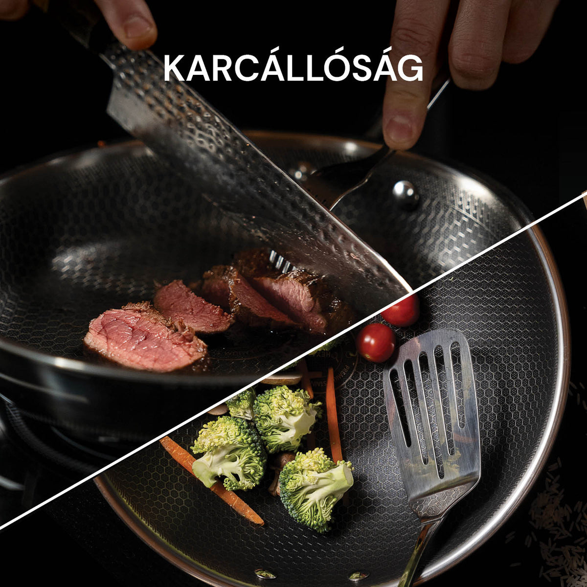 Az egész HexaPro edénykollekció rendelkezik egy elpusztíthatatlan réteggel, amely karcálló. Ez azt jelenti, hogy sem kések, sem fém spatulák nem károsítják az edény felületét. A lézerrel vágott acél hatszögek biztosítják a tartós felületet, amely lehetővé teszi az egyenletes hőelosztást és a tökéletes főzést.