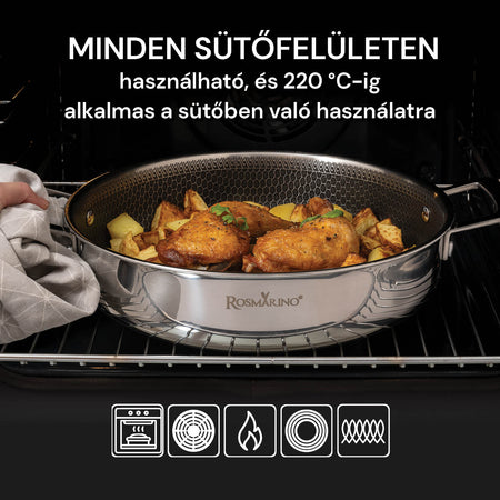 A Rosmarino HexaPro tökéletes választás azok számára, akik a legfinomabb éttermek eredményeit szeretnék elérni saját konyhájuk kényelmében. Kivételes tartósságával, karcállóságával és fejlett HexaPro technológiájával lehetővé teszi a legjobb ételek elkészítését. Bízzon kulináris álmaiban, és hagyja, hogy ezek a prémium edények egy kompromisszummentes kulináris utazásra vigyék.