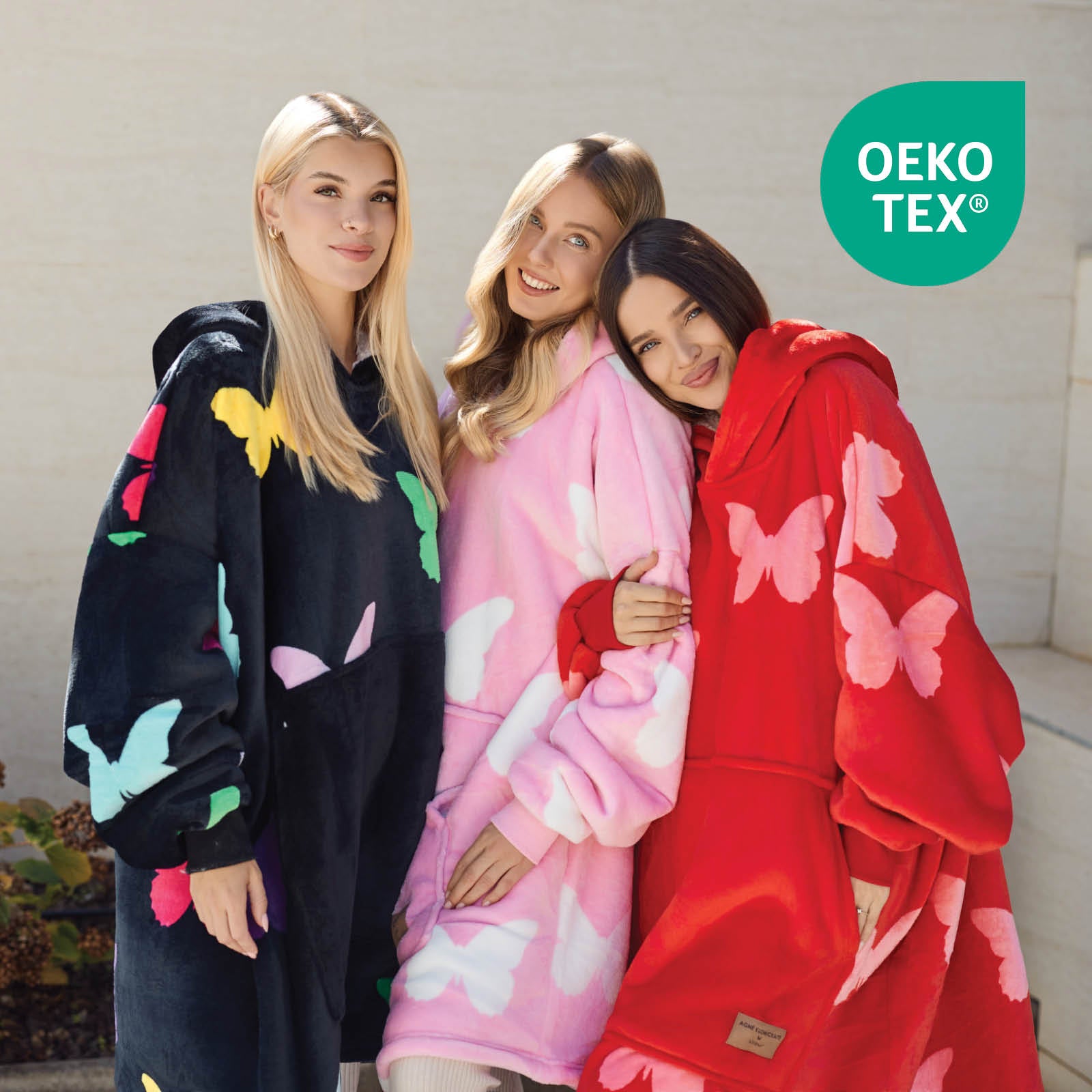 A ujjú kapucnis takaró rendkívül praktikus ajándék minden fázós embernek, pároknak, családoknak vagy barátoknak. Mivel univerzális méretű és káros vegyi anyagok nélkül készül (az OEKO-TEX Standard 100 tanúsítvánnyal igazoltan), bárki számára alkalmas, még érzékeny bőrű embereknek is.