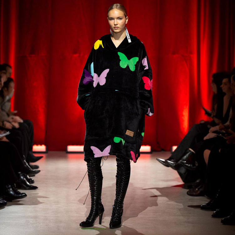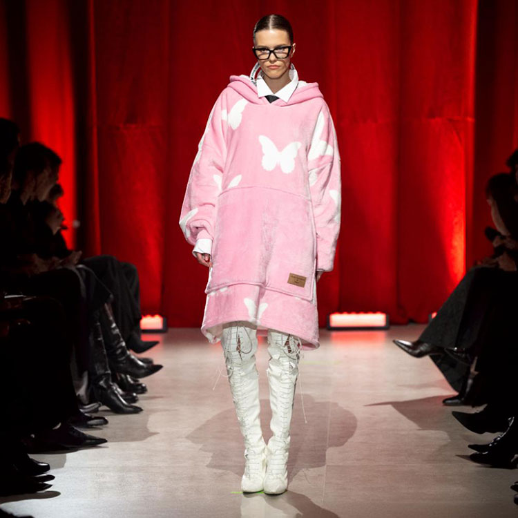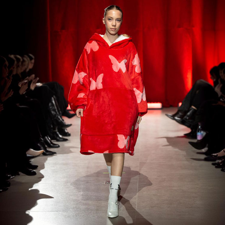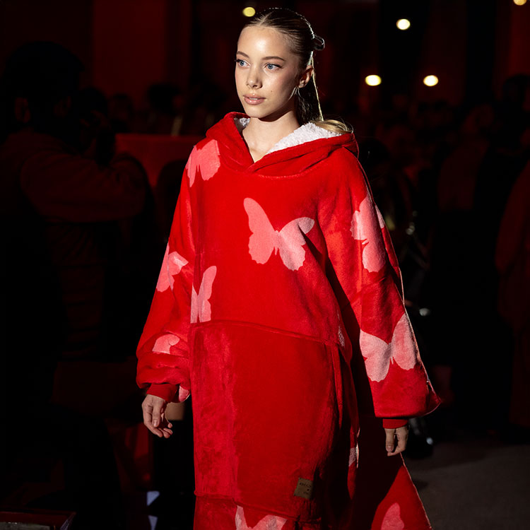 A litván divattervező, Agnė Kuzmickaitė együttműködésével készült, ujjas kapucnis takaró a kényelmet és a divatot ötvözi. Jellegzetes, játékos stílusa és funkcionális eleganciája a mindennapi ruhadarabot igazi divatcikké varázsolja – mindazok számára, akik otthonuk kényelmét egy kis presztízs kíséretében szeretnék élvezni.