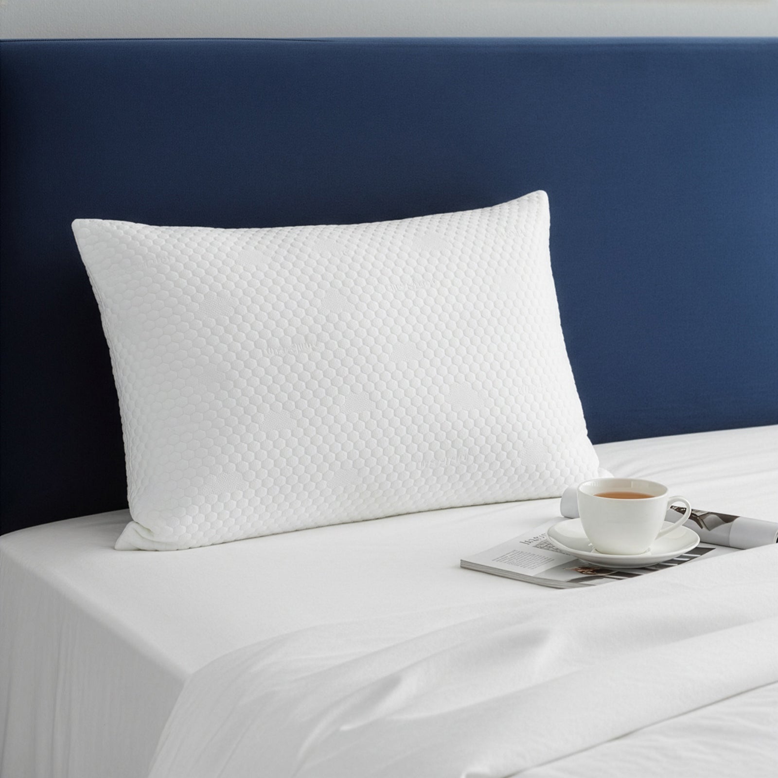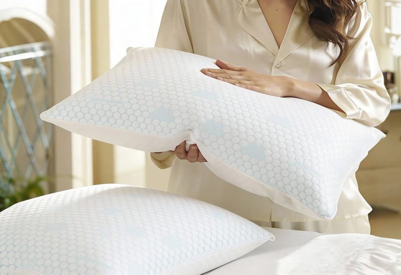 • Aprított memóriahab töltet, amely alkalmazkodik a testhez, csökkenti a feszültséget a nyak- és vállterületen, és fájdalommentes alvást biztosít