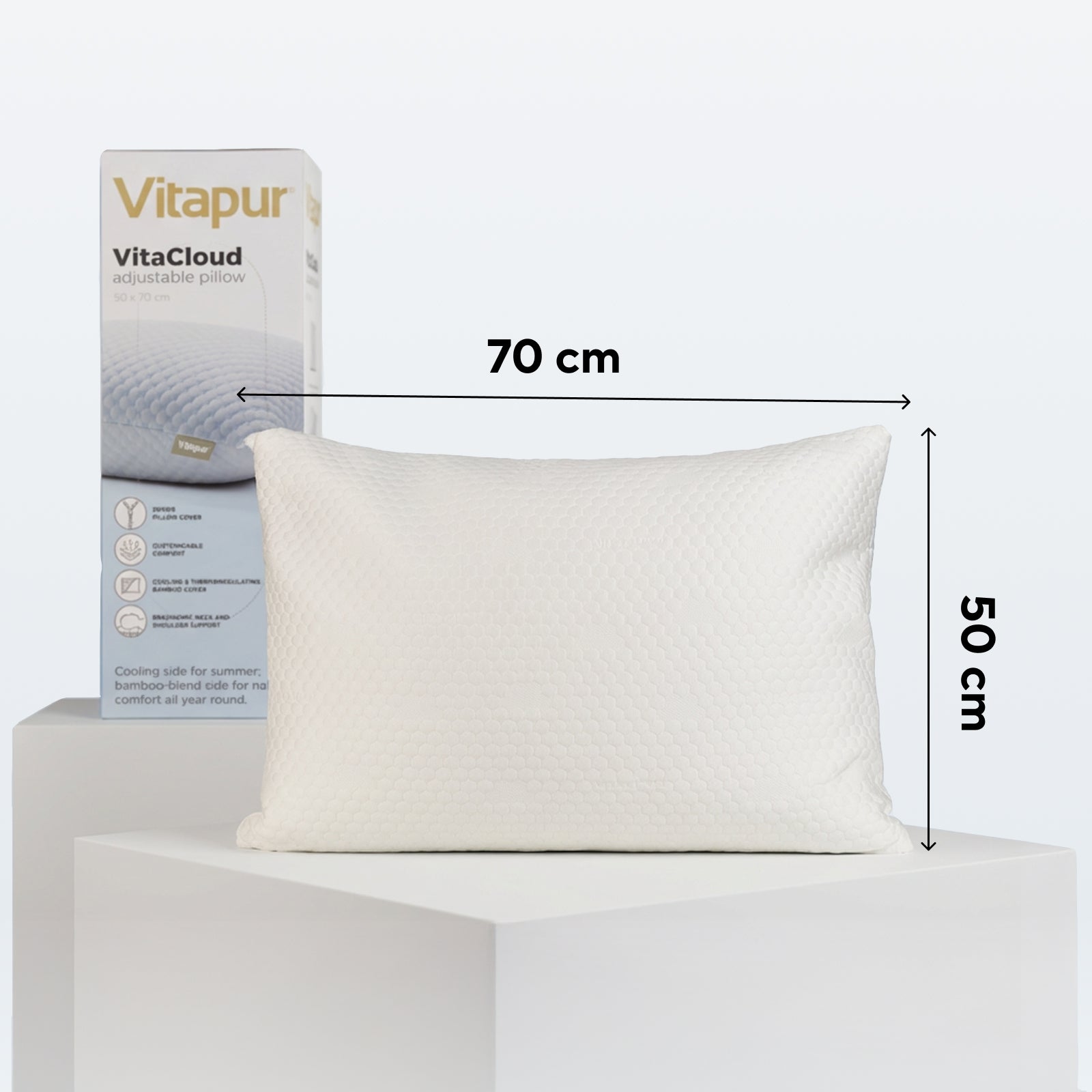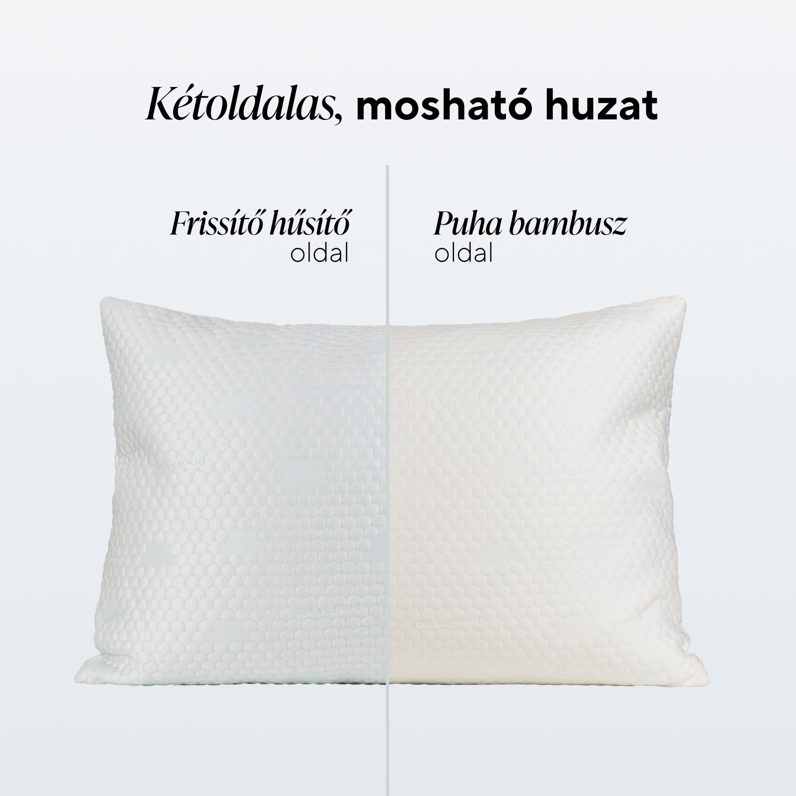 • Kétoldalas huzat: frissítő hűsítő oldal és puha bambusz oldal a maximális kényelemért minden évszakban