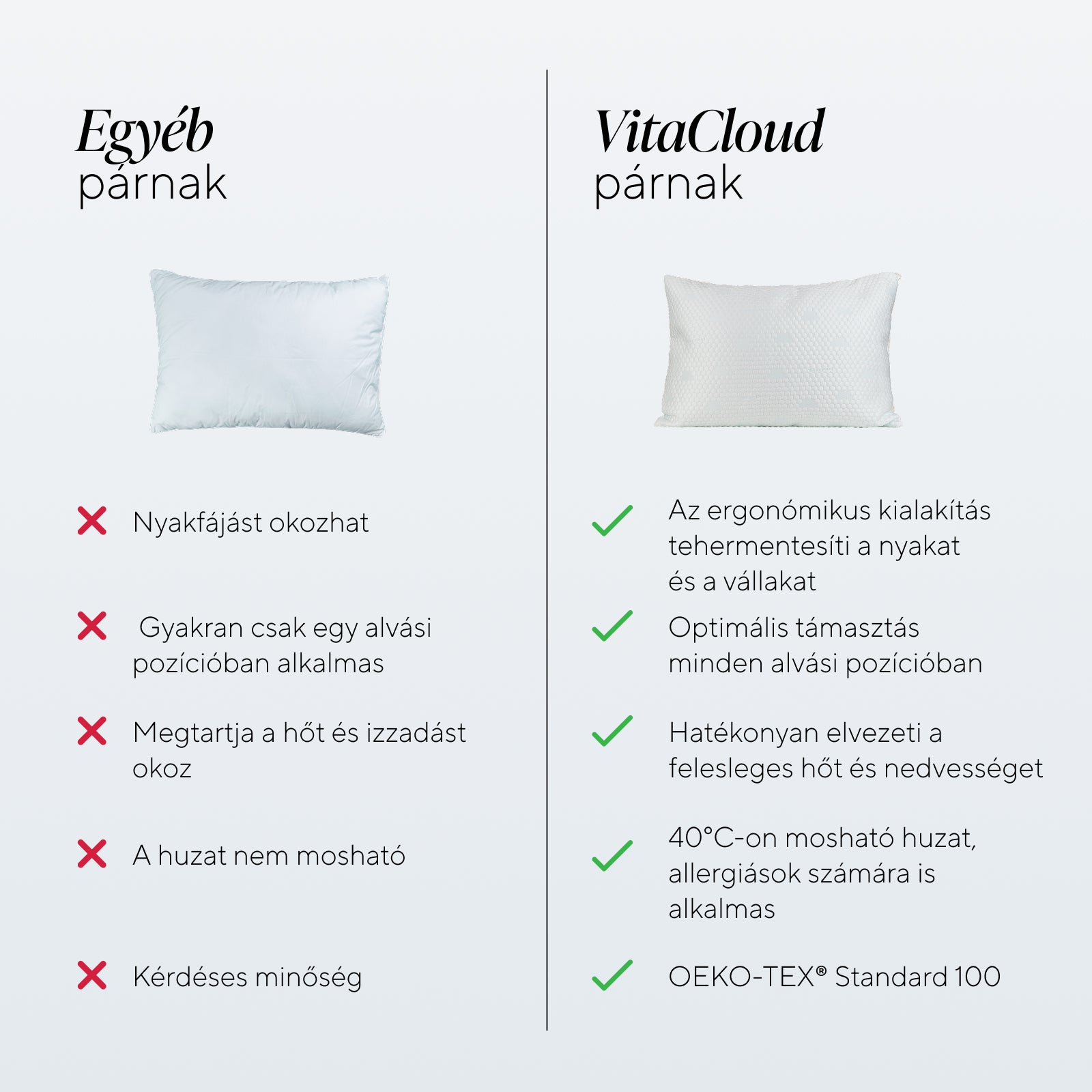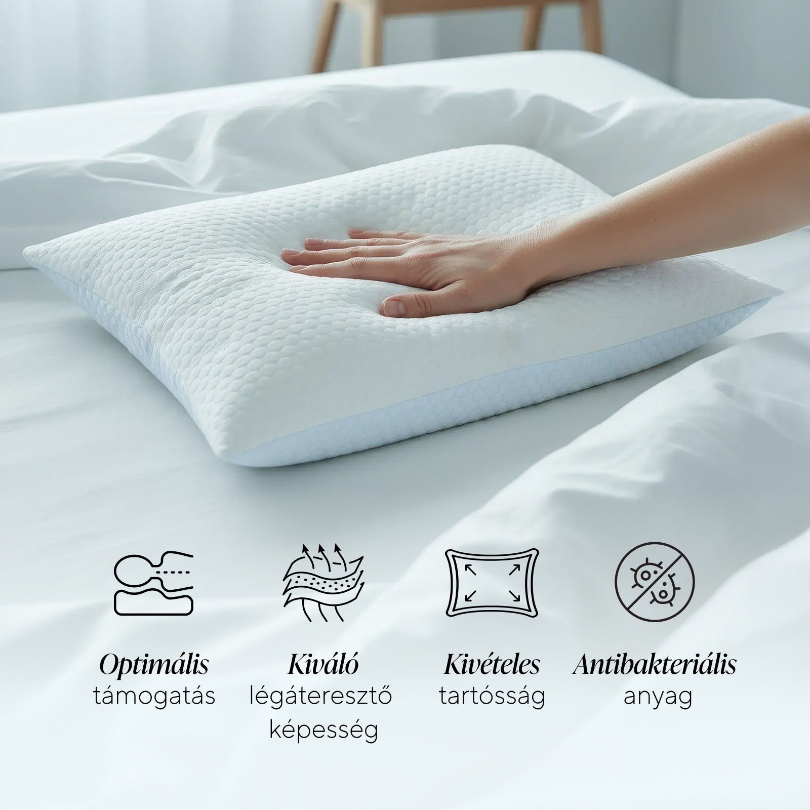 • Tartós minőség – a párna hosszabb ideig megőrzi formáját, mint a hagyományos párnák