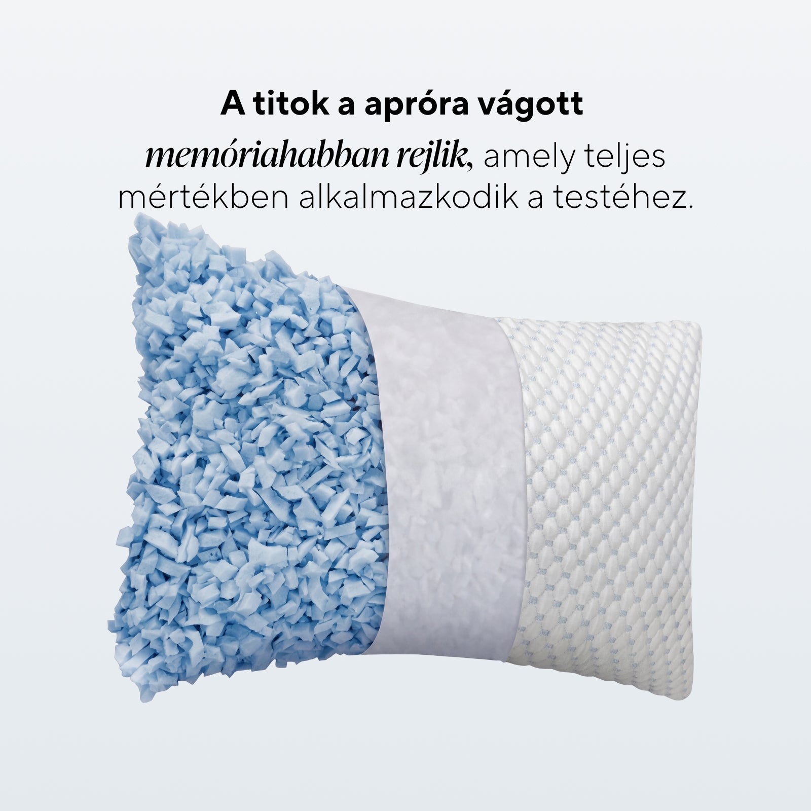 • A aprított memóriahab töltet teljes mértékben alkalmazkodik az alvási pozíciójához – a fájdalommentes alvásért