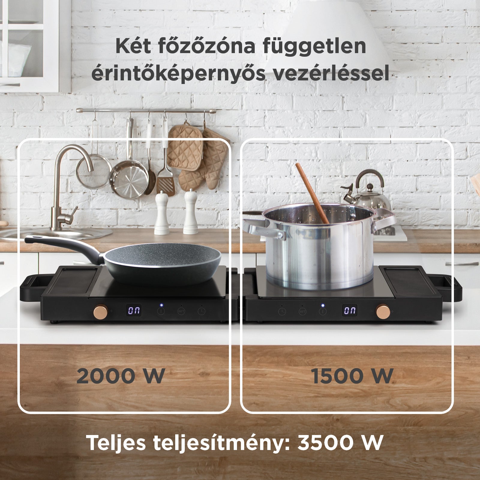 - Két főzőfelület 3500 W összteljesítménnyel a kompromisszumok nélküli egyidejű főzéshez.