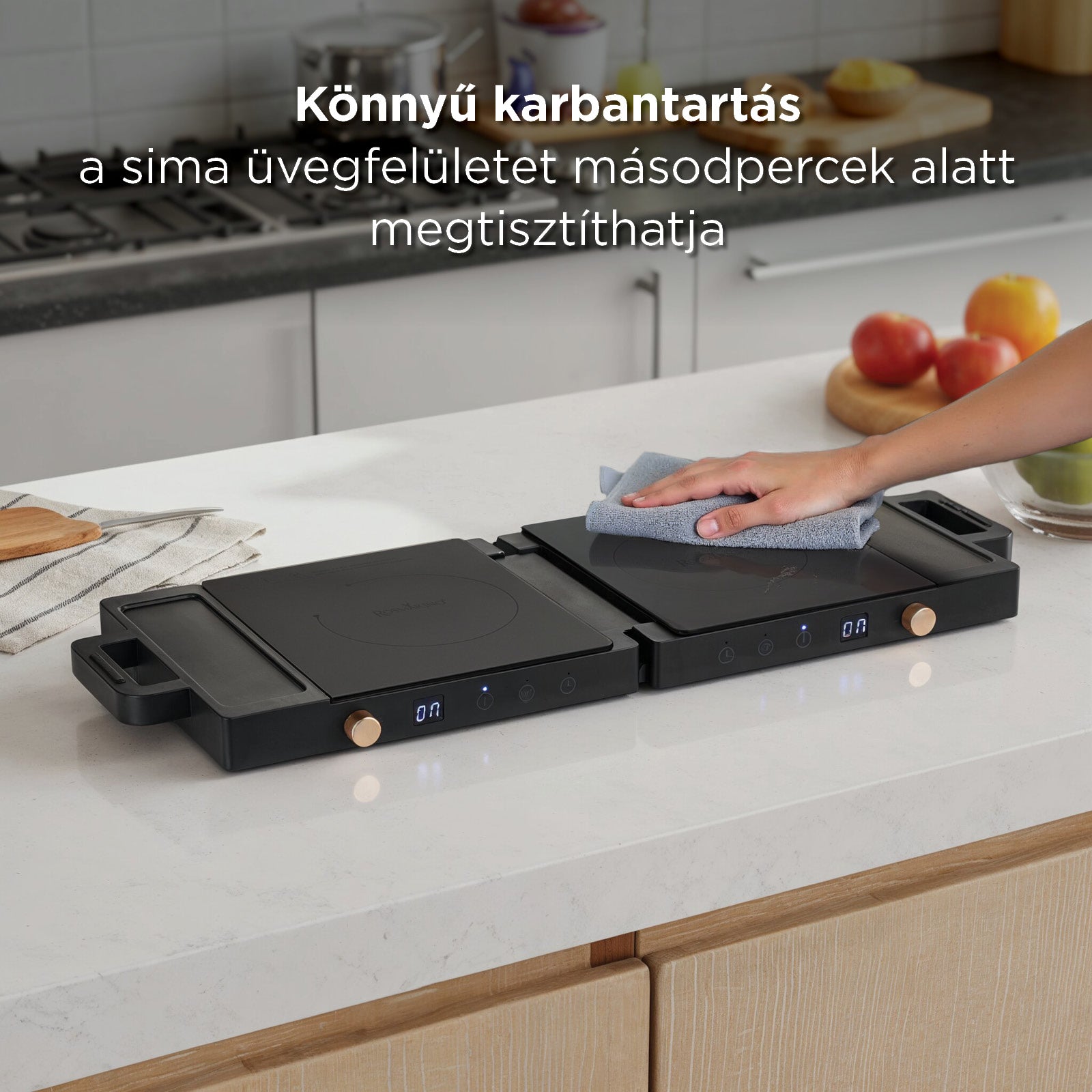 - Könnyű karbantartás a sima üvegfelülettel, amely másodpercek alatt tisztítható.