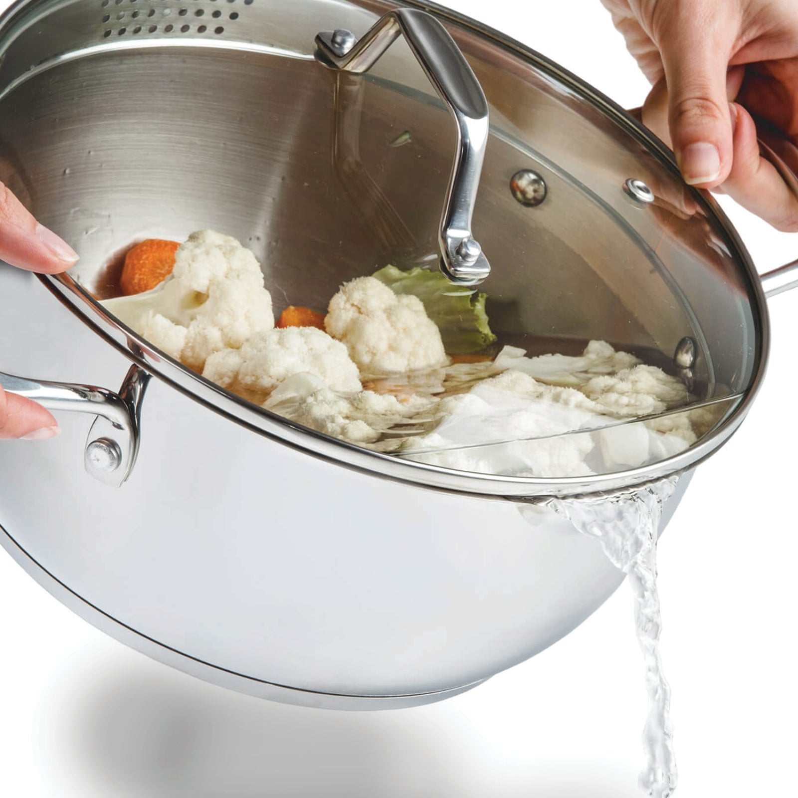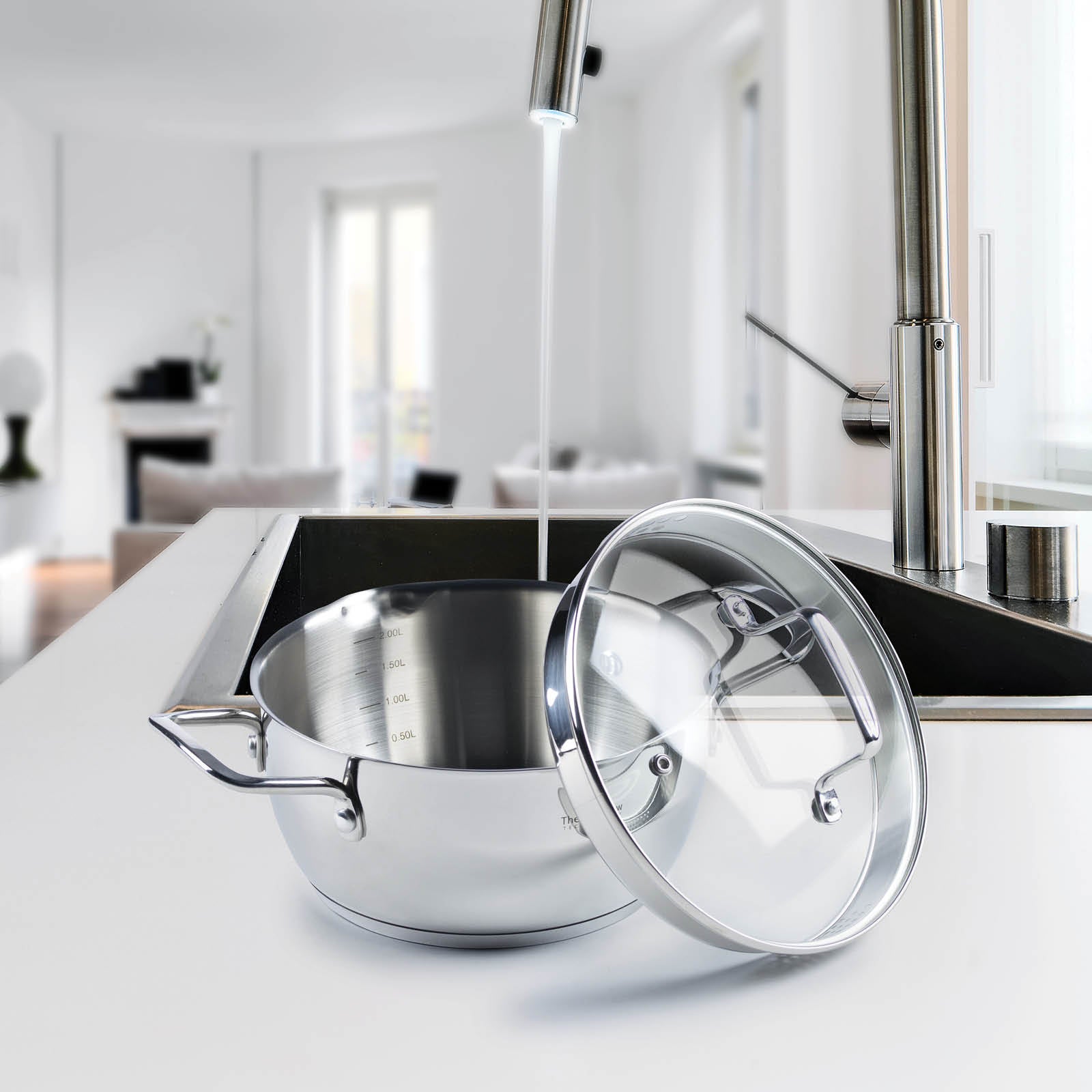 • 20 cm átmérőjű, 18/10 rozsdamentes acélból készült edény üvegfedővel.