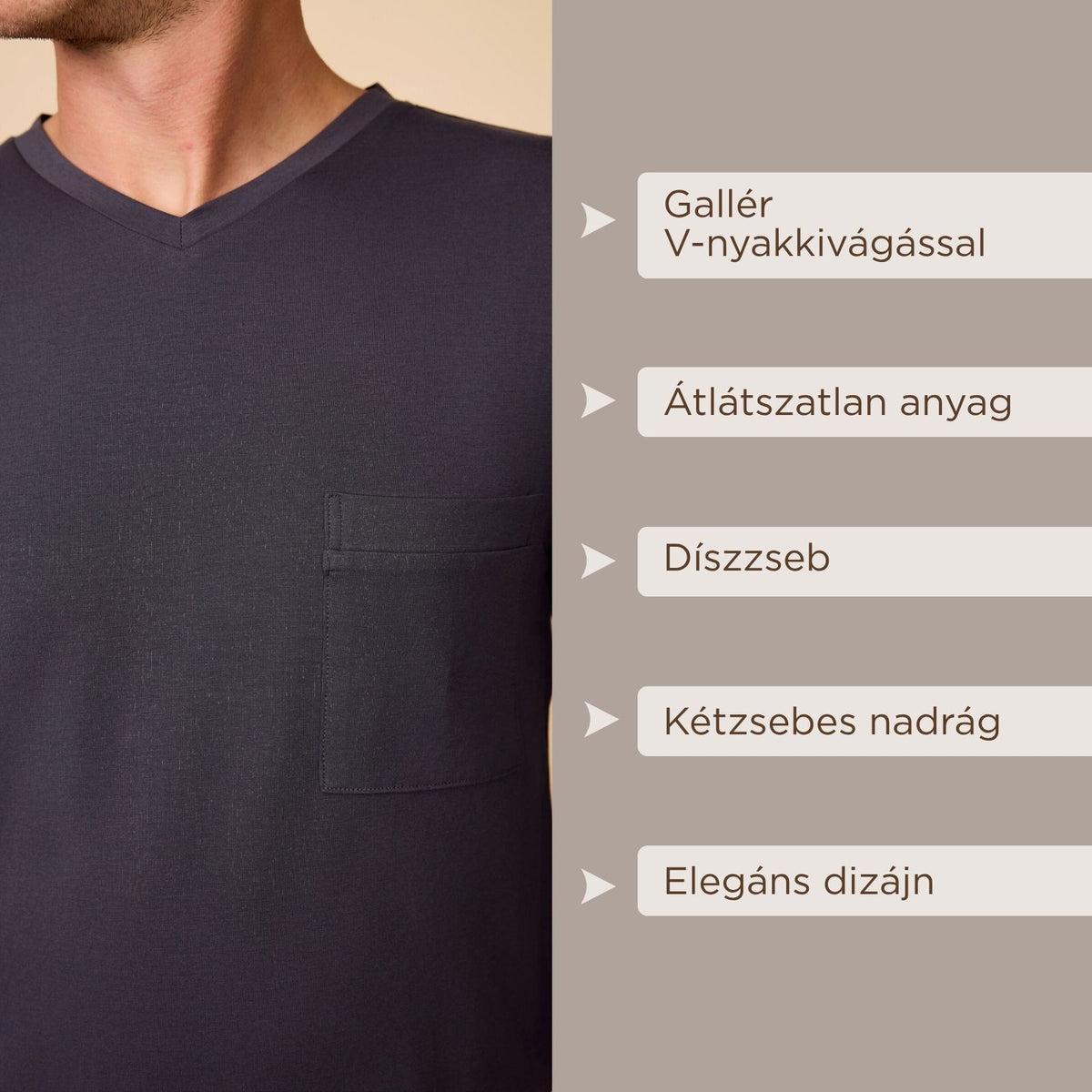 - Hosszú ujjú felső V-gallérral és mellzsebbel