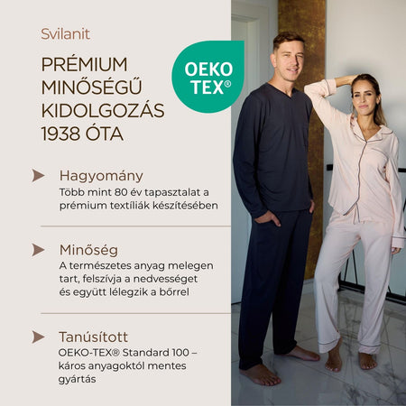 - Kényelmes, hosszú nadrág zsebekkel, elasztikus derékkal és megkötővel – kitűnő pamut férfi pizsama rövid és paumt férfi pizsama hosszú kollekció kiegészítőjeként