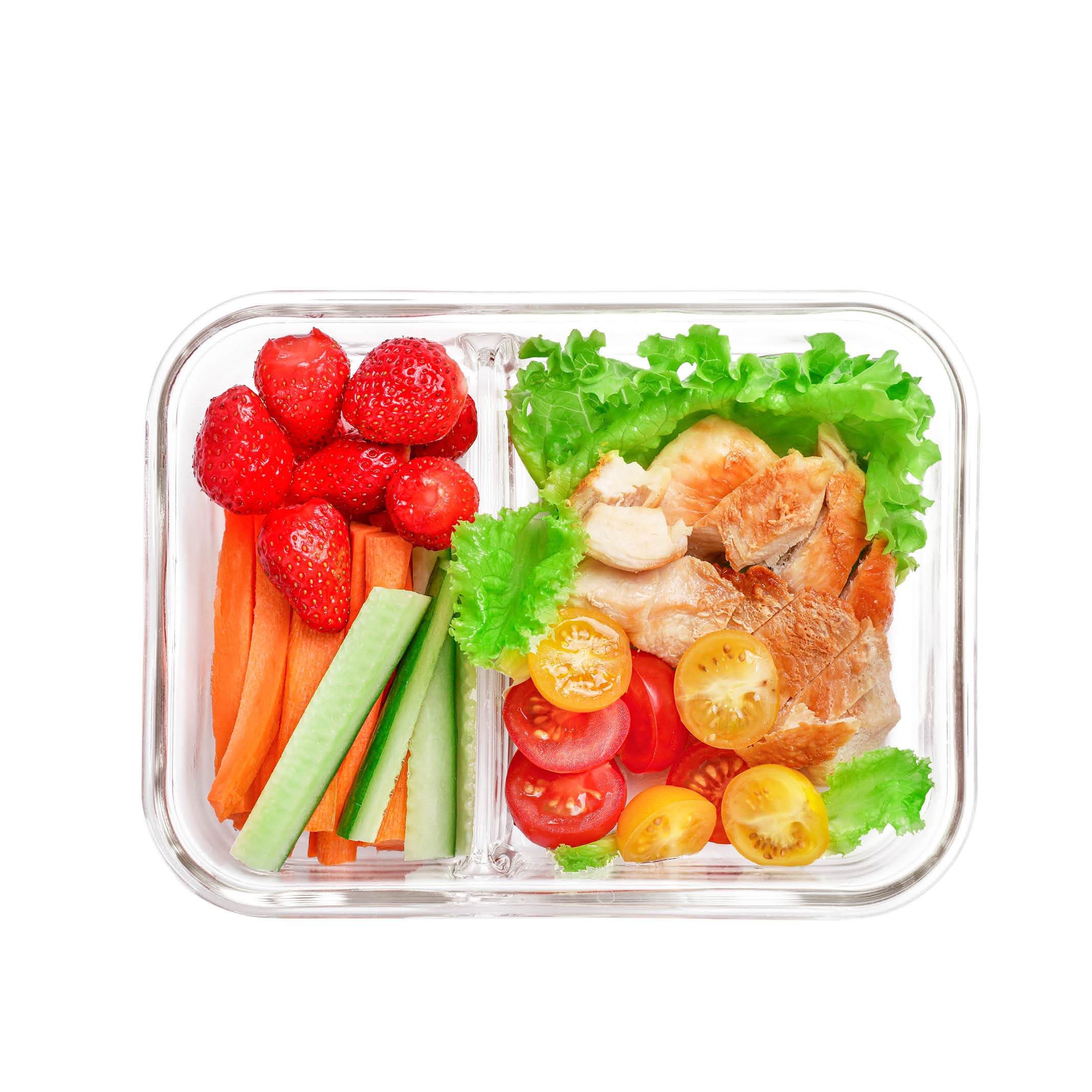 - Téglalap alakú üveg tepsi rekesszel és fedéllel.